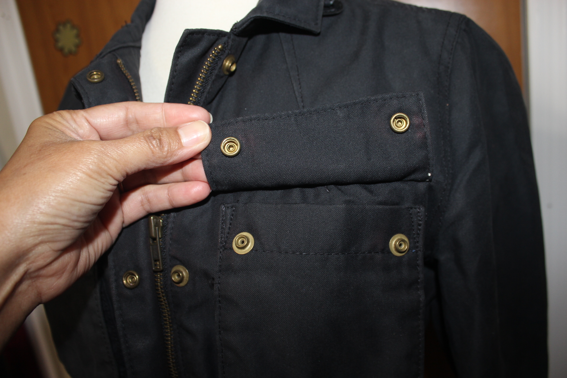 - ชายเสื้อมีเชือกผูกปรับได้พร้อมตัวปิดด้านใน